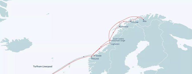 Cruise through the stunning Seven Sisters mountain range, where towering peaks stand above the shipping channel. The snow-covered mountains are a striking sight in winter, and you can learn the legend of the trolls turned to stone.